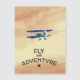 Fly Into Adventure vintage bi plane prop aircraft sunset romantic travel poster.