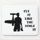 Fly it like you stole it - text with silhouette of a young man holding an RC plane