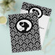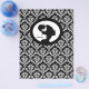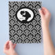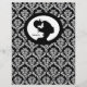 Flyer Salon Spa Butterfly woman silhouette with pretty damask background in black and white.