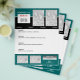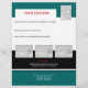 If you're looking to create your own flyer for promotional and marketing purposes and are looking for a fully customisable template, then this is perfect for your business needs. To ensure that the customisable fields are in the correct sequence, select the "customise it" button on this page. This double sided template has fields which enable you to type in your own wording and upload your own unique corporate logo and/or images. FRONT: The top third of the brochure has a horizontal blue green (teal), thin white and broad black band, the middle third is stark white and the bottom band is the same blue green colour as the top. There is provision for you to upload 2 (two) photos to the top band and 2 (two) to the bottom band. Apart from your businesses operational details, the bottom right corner, which has a black and silver striped image with highlights your businesses name, has fields below it for you to include your business, email and website address. BACK: The top quarter has a teal horizontal band, the middle quarter is stark white and the bottom half has a broad black, thin white and broad blue green horizontal stripe. The top right corner allows for 1 photo to be uploaded and half way down, 3 (three) image templates are set side by side. The top half of the former images are against the white background and the bottom half against the black background . PAPER: A great paper at an affordable price. This 80lb text-weight, matte white paper is perfect for flyers, leaflets, brochures and mailings. Our value paper contains 50% recycled content. SIZE: 8.5" x 11" CUSTOMIZE IT: Change the style, colour and size of the font. Re-size and place the photo fields where required. Delete or add additional photos and wording. TEAL COLOURED BORDER: Change to any colour of your choice.