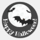 Cute (and spooky!) little bats flying at night in front of the moon.