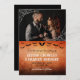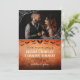 Halloween or goth wedding save the date with a photo of the two of you adorned with printed spider web in the corners, and your save the date wording in a gothic font against a distressed orange background with flying bats. Halloween save the date with your photo, bats, and spider web. Orange and black goth save the date personalised with a photo to inform your guests about your upcoming goth wedding.