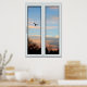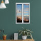 Enhance the decor of any room with this picturesque poster. The artwork creates the illusion of having a window on your wall. This realistic view of a bird flying at sunset gives the illusion of looking out of the window. The original artwork is 24" x 36" which is the average poster size and was created at high resolution (300 dpi) so it prints out beautifully.