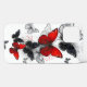 Flock of flying, realistic, red and black morpho butterflies on white background with drops of paint.