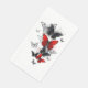 Flock of flying, realistic, red and black morpho butterflies on white background with drops of paint.