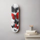 Flock of flying, realistic, red and black morpho butterflies on white background with drops of paint.