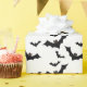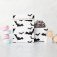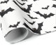Bat-themed gift wrap depicting a small group of black bats in flight on a white background.