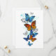 Flying, bright, blue butterfly morpho and orange monarch butterfly on a white background. Morpho. Monarch butterfly. Design with butterflies.