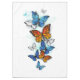Flying, bright, blue butterfly morpho and orange monarch butterfly on a white background. Morpho. Monarch butterfly. Design with butterflies.