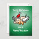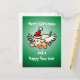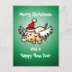 The Flying Christmas Pig on a Green Christmas Postcard.