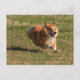 A cute Welsh Corgi photographed while running across a grassy field in springtime.