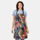 FLYING CRANES,WAVES,SPRING FLOWERS Japanese Floral Apron