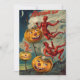 Smoke clouding the sky, the devils can allude humanity. This vintage Halloween depicts flying devils, smoke, smiling jack o' lantern, and crescent moon.