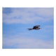 Photograph of a female magnificent frigate bird flying on a blue sky background with clouds