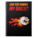 Flying golf ball in flames and funny quote, can you handle my balls, funny sport notebook.