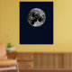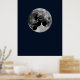 A motocross stunt jumper flying through the air silhouetted by the full moon.