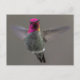 Animal card showing a beautiful colourful hummingbird in flight. Hummingbirds are New World birds that constitute the family Trochilidae. They are among the smallest of birds. They are known as hummingbirds because of the humming sound created by their beating wings which flap at high frequencies audible to humans. They hover in mid-air at rapid wing flapping rates, typically around 50 times per second, but possibly as high as 200 times per second. Hummingbirds have the highest metabolism of any homeothermic animal. To conserve energy when food is scarce, they have the ability to go into a hibernation-like state.