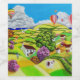 Strong colours feature in this whimsical scene. This oil painting on stretched canvas is painted in the popular naive/folk art style. Children fly their kites with on the field near their country houses. A colourful countryside scene with hot air balloons and the sea visible in the background.