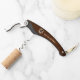 This corkscrew, used by flight attendants of mythical Flying Moose Aviation in Talkeetna, Alaska, features a leather patch worn by the company's bush pilots. The patch depicts a winged moose superimposed on a circle with text reading "FLYING MOOSE AVIATION," "TALKEETNA, AK" and "ESTD 1957." Everything is superimposed on a brown leather background image. Add your own additional text. Flightseeing, glacier landings, cargo, hunting and fishing charters. We fly, tell us where you want to go.