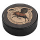 A leather patch bearing the logo of mythical Flying Moose Aviation in Talkeetna, Alaska as worn by the company's bush pilots. Features a winged moose superimposed on a circle with text reading "FLYING MOOSE AVIATION," "TALKEETNA, AK" and "ESTD 1957."