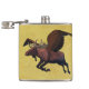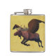 A digital rendering of a winged moose superimposed on a buckskin background. While high-status positions in Santa's delivery team are reserved for reindeer (Caribou), day-to-day, heavy-hauling duties are assigned to moose. Take it easy with the moose juice or you might begin seeing a few of these flying moose.