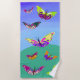 Flying multicolored butterflies beach towel