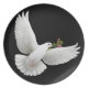 Original fine art painting of a flying dove with an olive branch in its mouth by designer Carolyn McFann of Two Purring Cats Studio printed on a quality plate for all who love peace.