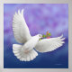 Original fine art design of a flying peace dove carrying an olive branch by illustrator Carolyn McFann of Two Purring Cats Studio.