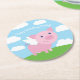Flying Pig Cute Kid's Birthday Party Round Paper Coaster