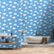 Flying Pig Cute Piglet with Wings on Blue Pattern Wallpaper