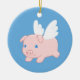 Flying Pig - Piglet with Wings on Blue Ceramic Tree Decoration