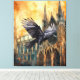 Flying Raven and Mediaeval Gothic Cathedral Canvas Print