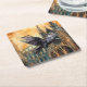 Flying Raven and Mediaeval Gothic Cathedral Square Paper Coaster