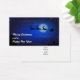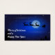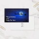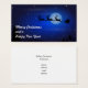 Merry Christmas and a Happy New Year. The image on the front is a festive christmas illustration. Santa in his sleigh and his reindeer flying across the dark blue night sky. A glowing moon illuminates the sky and one can see twinkling stars all around.
