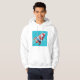 Dreaming of flying through space in a spaceship. Well then this design will answer that dream. It is off a colourful spaceship that is zipping through space. The rocket is is multicolored and has a vapour trail out the back. It is set against a blue background. This flying spaceship design looks great on this mens hoodie. Perfect for yourself or as a gift