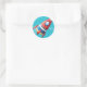Dreaming of flying through space in a spaceship. Well then this design will answer that dream. It is off a colourful spaceship that is zipping through space. The rocket is is multicolored and has a vapour trail out the back. It is set against a blue background. This flying spaceship design looks great on these stickers. Perfect for yourself or as a gift