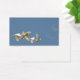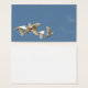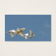 Group of 5 flying white doves in a blue sky with just a few wisps of clouds business card. Also useful for weddings