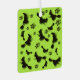 Flying witch among stars at Halloween night on green