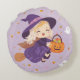 Bring cosy Halloween vibes to your space! 💜🧙♀️ This round pillow features a cute blonde witch flying with her pumpkin candy bucket, surrounded by happy ghosts and sweets. A fun and charming accent for your sofa, bed, or kids’ room — perfect for Halloween décor or as a cute seasonal gift! 🎃👻