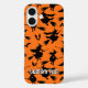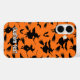 Young flying witches riding brooms. Flying bats. Seamless pattern. Custom background colour. Custom text.