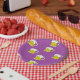 Foaming beer cup on purple paper plate