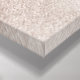 A beautiful landscape with unique textures showing a cliff side lighthouse and foggy night time ocean with a rising moon and starry sky in shades of red, pink, gold, silver, and blue.