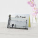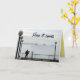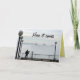 Winter in Seattle has lots of surprises. On this foggy day along the waterfront, you couldn't even see the ferryboat coming in from Bremerton until it was suddenly right in front of you. This photo shows the dock and boardwalk outside the Seattle Aquarium, framed by round lights on top of tall poles, and a man silhouetted by the railing, holding a bouquet of flowers. He's looking out at the almost obscured outline of the top of the ferryboat, as if waiting for it to bring him his true love. The photo looks almost as if it is in black and white. It is bordered by a grey background, which is customisable. On the front of the card are the words, "Here it comes." Inside is the message, "Your ship's coming in! Just in time for your birthday. Hope it's a great one!" Photo copyright Gail Storrs 2014.