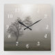 Wall clock - Such a beautiful foggy morning in the Ozarks. The sun is trying to peak through the thick clouds just over the top of a tree sitting on a hill. Looking for more prints or products? Feel free to visit my store: http://www.zazzle.com/timelessmomentsphtgy