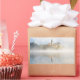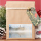 Rectangular photo sticker with a foggy sunrise at Lake Bled with reflection of the island with the church in the still water of the lake and with Bled Castle in the background on a beautiful autumn day in Slovenia.