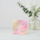 This stylish makeup artist's business card features an angled abstract background that sparkles in shades of gold through peach and watermelon. Add name, title or tagline on the front and contact details on the reverse side. A chic and professional choice for any beauty, fashion or style-related business. Shown here in a modern square business card size. Search ID775 to see other size, colour options and professions with this glam background pattern.