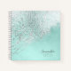 This stylish notebook features an angled abstract background that sparkles in silver and teal. Add name, title or tagline on the front and contact details on the reverse side. A chic and professional choice for any beauty, fashion or style-related business. Search ID775 to see other products with this design, including matching business cards.