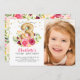 Adorable 3red Birthday invitation featuring a number two foil balloon adorned with pretty pink flowers with a coordinating back