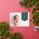 I looked through many templates and saw this one and it was perfect! Loved the rose gold foil (I changed the initial “hello” to thank you and a different font. I loved it. Colors looked great with my photo. Great. Only complaint is the shipping packaging. It wasn’t a very protective package more so just an envelope so one of my cards got messed up.