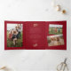 An elegant photo holiday card featuring hand drawn pine branches in a festive faux foil gold and red colour palette designed by Stacey Meacham. Tri-fold cards are a great way to send holiday cards. They allow more room for photos and longer messages. Your card is sure to be a stand out.